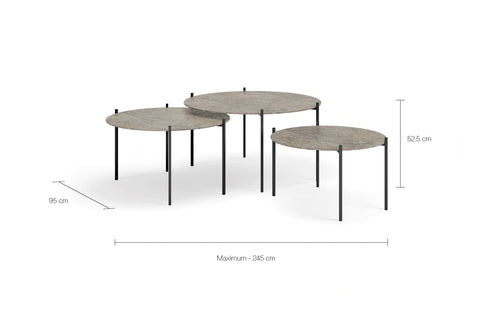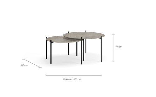 Leo coffee table medium set in black with Sabbia dekton, stylish and modern design for contemporary living spaces.