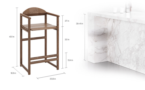 Pair of elegant By Crea Carl bar stools in dark oak with ivory boucle cushions, standing against a luxurious white marble kitchen island and dark wooden cabinetry. Ideal for upscale kitchen designs, Scandinavian furniture, and comfortable seating solutions. Pair of elegant By Crea Carl bar stools in dark oak with ivory boucle cushions, standing against a luxurious white marble kitchen island and dark wooden cabinetry. Ideal for upscale kitchen designs, Scandinavian furniture, and comfortable seating solutions.