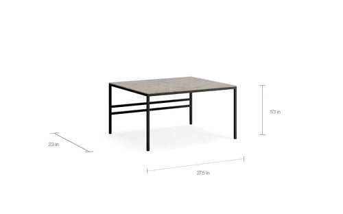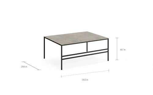 Close-up front view of the Anton Nesting Coffee Table from by Crea, featuring a minimalist black steel frame and durable Dekton top, styled with modern decor in a neutral interior. Close-up front view of the Anton Nesting Coffee Table from by Crea, featuring a minimalist black steel frame and durable Dekton top, styled with modern decor in a neutral interior.