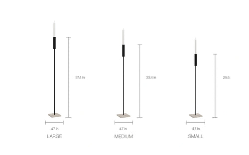 Pair of tall Vera candle holders in black with Caesarstone base, styled in a minimalist interior next to a white kitchen cabinet and oak furniture. Pair of tall Vera candle holders in black with Caesarstone base, styled in a minimalist interior next to a white kitchen cabinet and oak furniture.