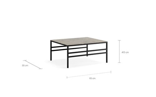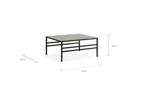 Close-up front view of the Anton Nesting Coffee Table from by Crea, featuring a minimalist black steel frame and durable Dekton top, styled with modern decor in a neutral interior. Close-up front view of the Anton Nesting Coffee Table from by Crea, featuring a minimalist black steel frame and durable Dekton top, styled with modern decor in a neutral interior.